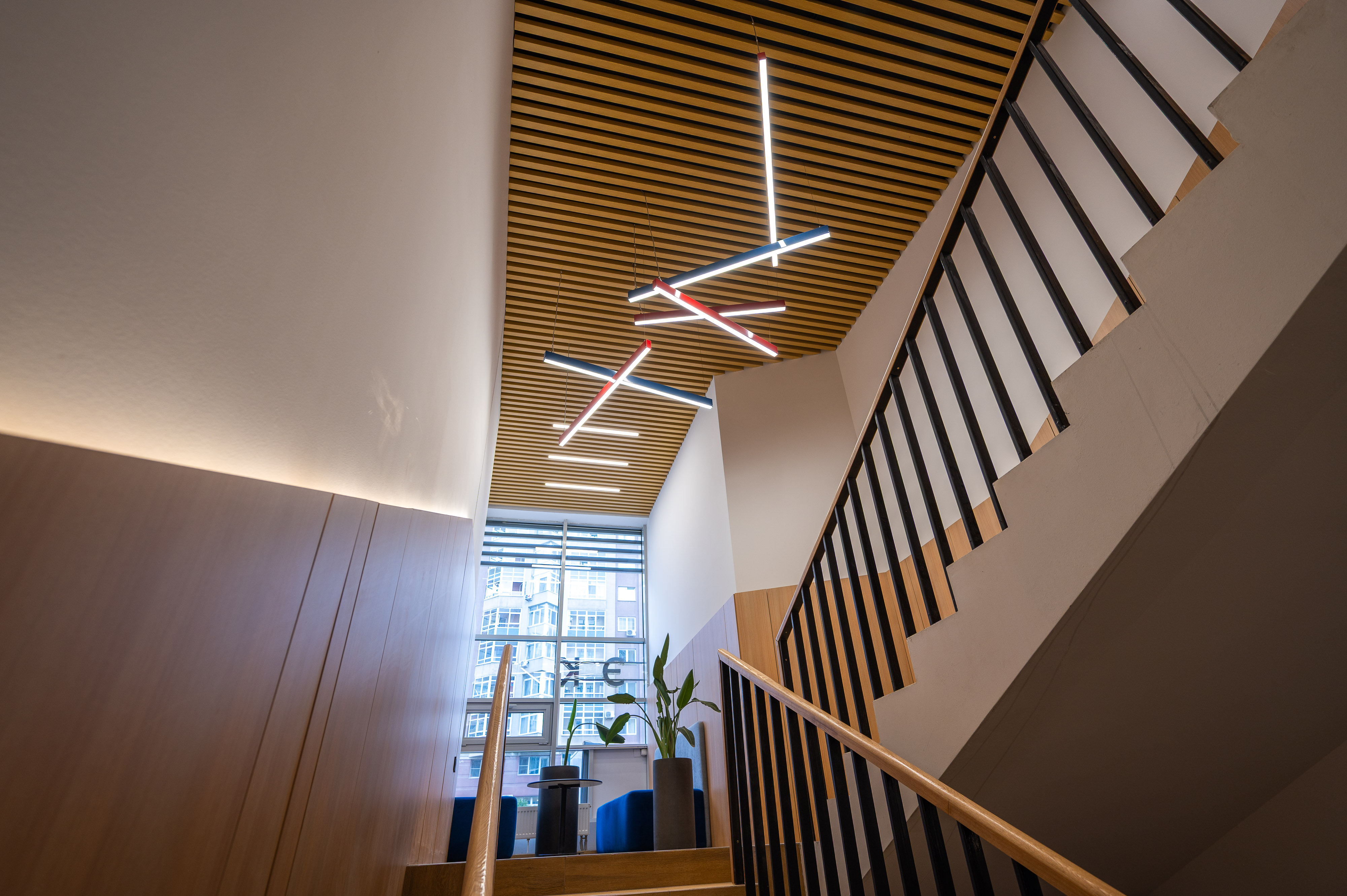 • Обеспечивают мягкое равномерное освещение, подчёркивают фактуру потолка и создают приветственную атмосферу для посетителей.